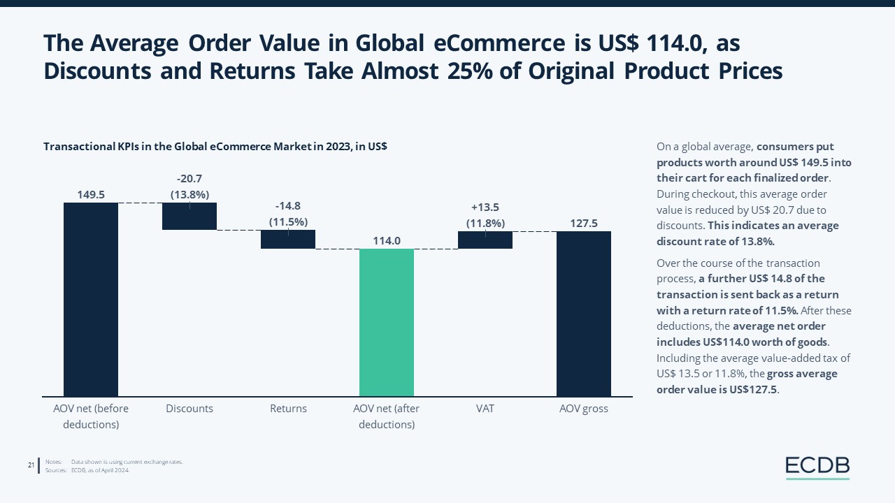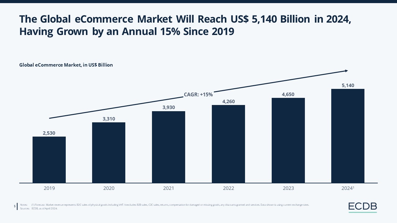 The global eCommerce market has shown impressive growth over the last years and is expected to reach US$5 trillion in 2024. Some of the biggest companies in the world like Amazon and Apple are active in the digital retail space. This extensive report examines the biggest trends and developments shaping the global eCommerce industry in 2024 covering three different perspectives on market growth, retailer diversification and the importance of new customers in the industry. Access the State of Digital Retail 2024 to get all the insights you need on the eCommerce business!